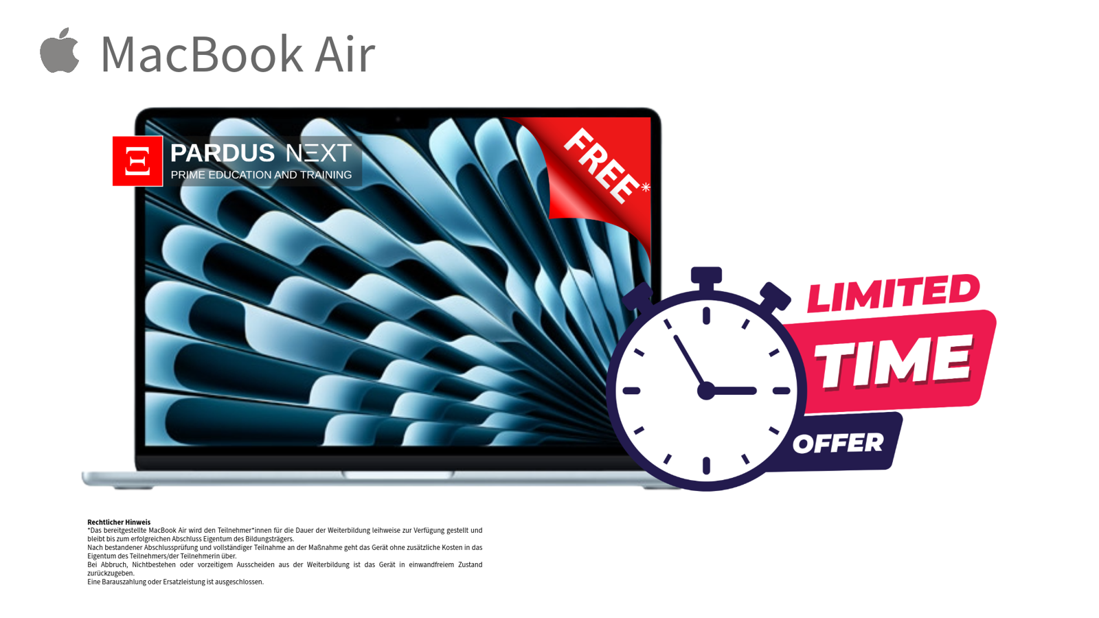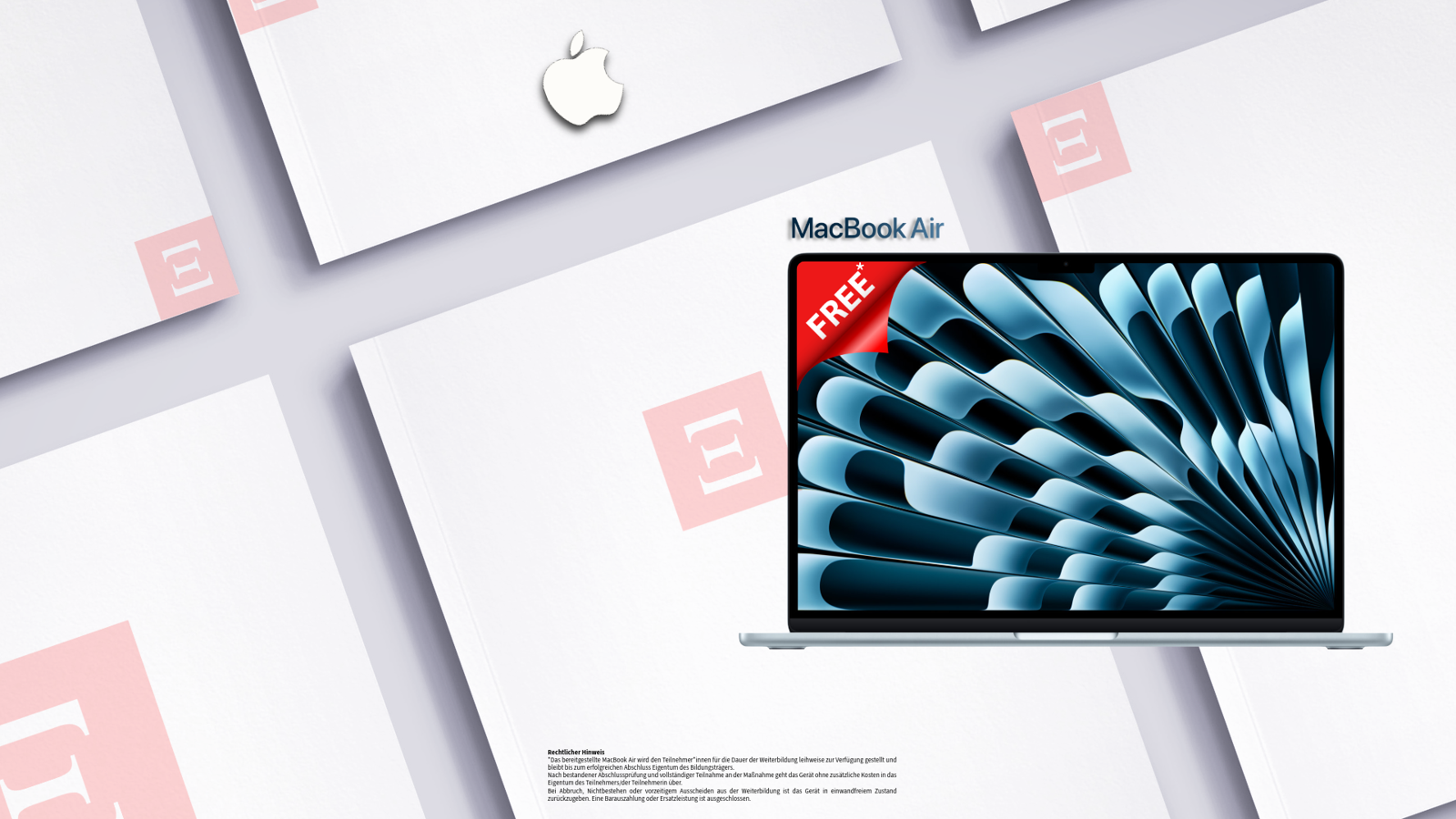 Nach erfolgreichem Abschluss und deiner eigenen Projektarbeit bleibt das MacBook Air dauerhaft in deinem Besitz – als Werkzeug für deinen Karrierestart und Symbol deines Erfolgs.